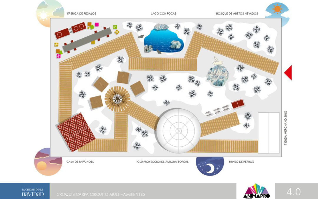 Tambien permite ver la fábrica de Santa Claus y cómo se preparan los regalos. Descubriremos por sorpresa la casa de Santa Claus donde es propable que nos reciba el anfitrión. Elfos, árbol mágico, poblados o la espectacular aurora boreal completará la visita a esta increible exposición digna de la magia de la Navidad.
